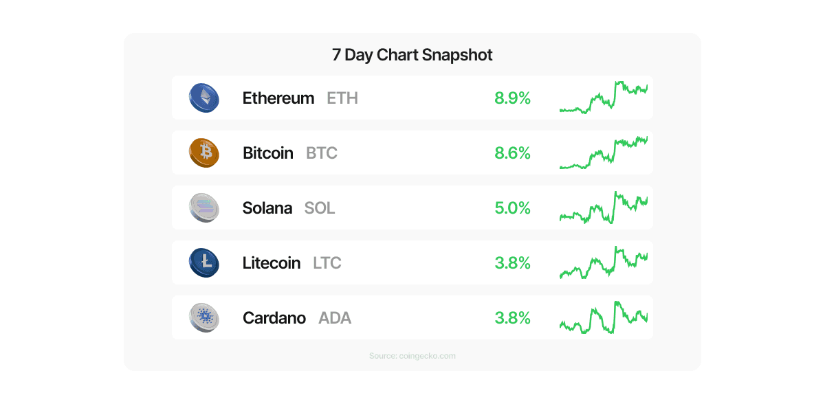 Top Movers (Coins Available on Metal Pay - 7 Day Chart)